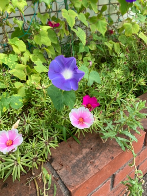 当院の朝顔と松葉牡丹も、きれいに咲いています。