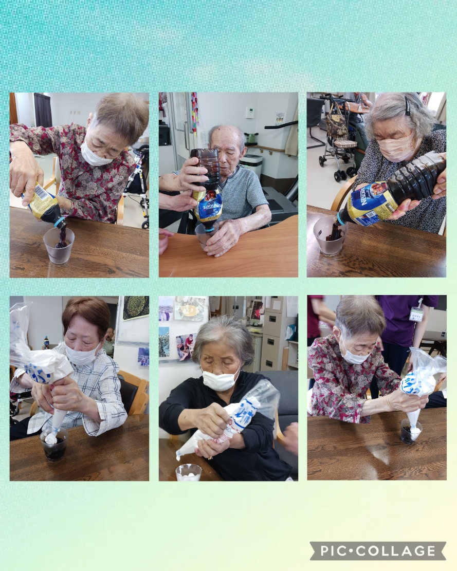 8月はおやつ作りで、皆さんと一緒に涼しげなコーヒーゼリーを作りました✨