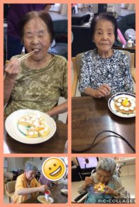 利用者様ひとりひとり、ホイップクリームとフルーツで飾り付けをしていただきました❗ それぞれ、利用者様の個性が光っていましたょ😊👍