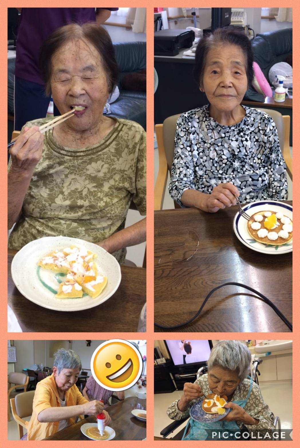 出来立てのホットケーキを目の前にして『 美味しい、美味しい』と笑顔でした😊