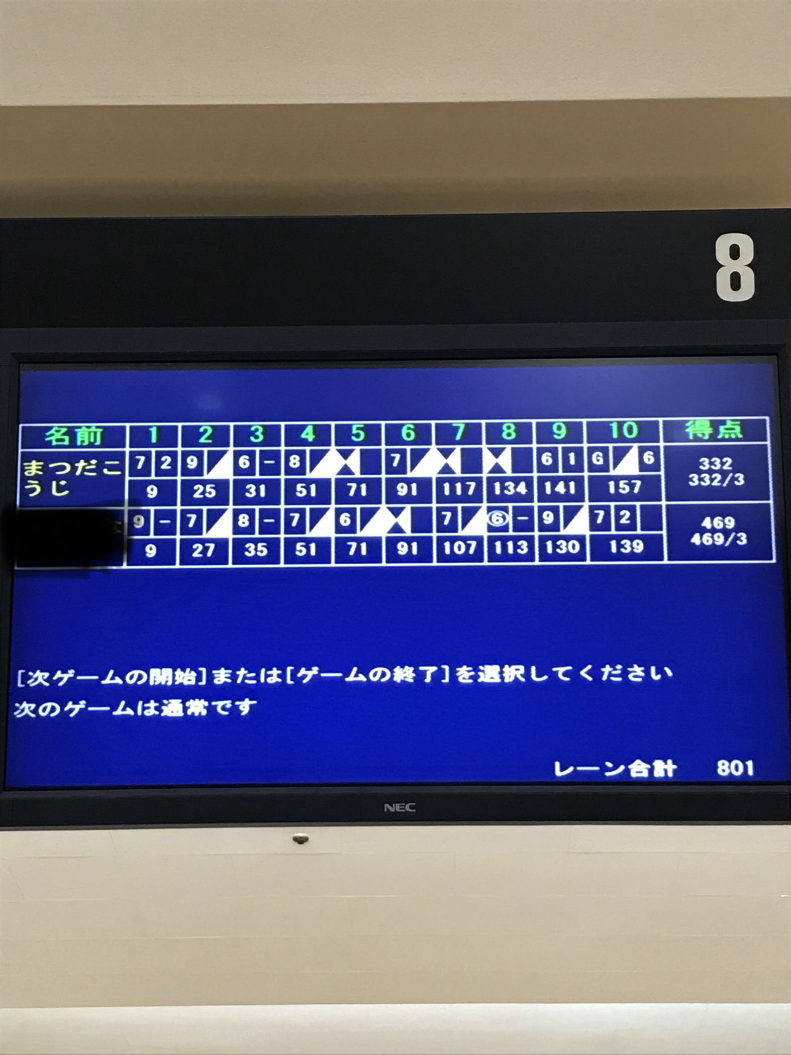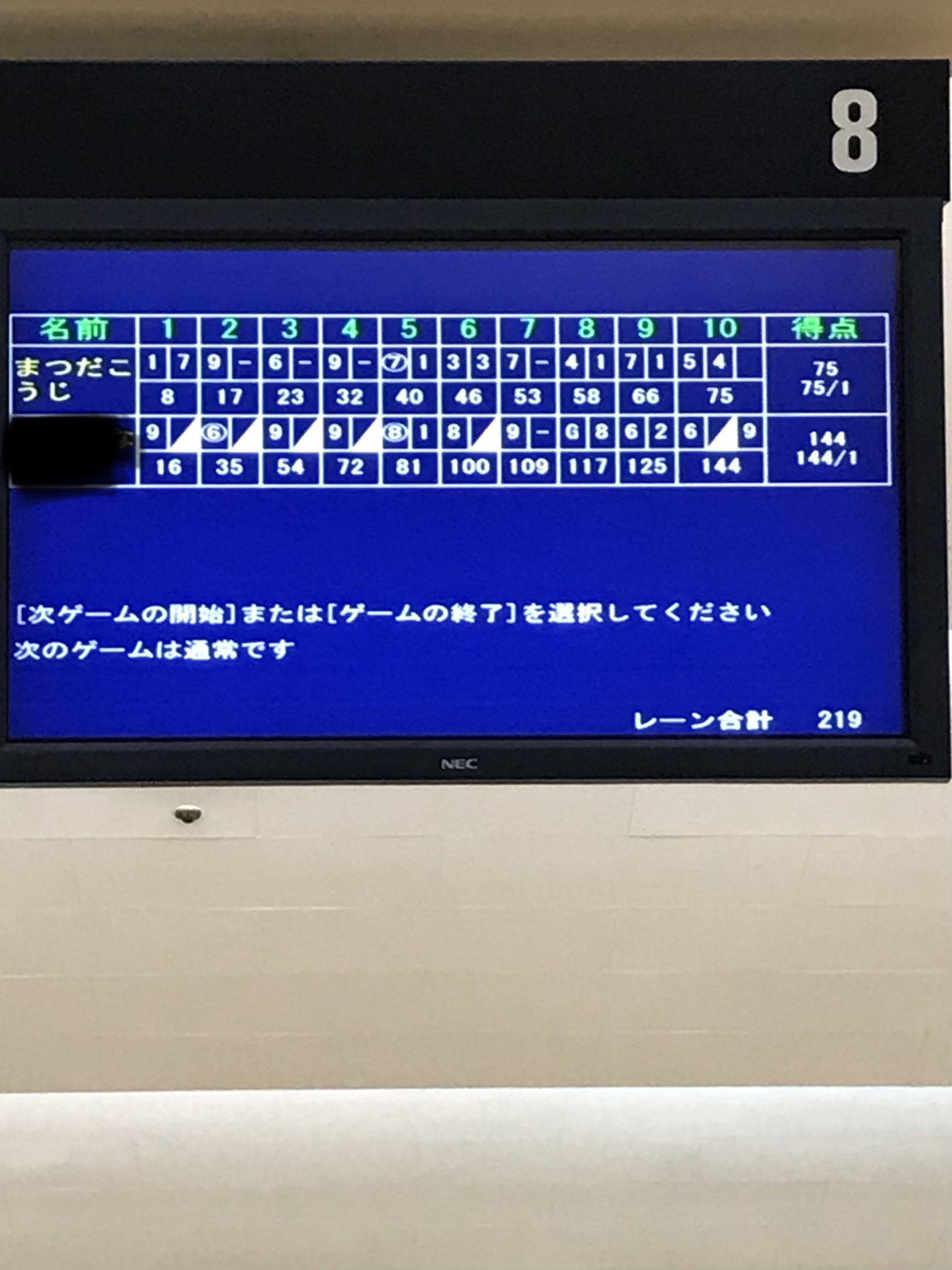 2ゲーム目は投げた球が左に流れることが多くなり、友人のアドバイスで少し右から投げるとスペア3つ取ることができました!!