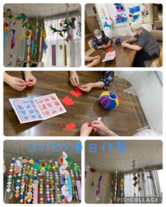 なごみの郷では、手先の器用な方達に室内の飾りを七夕モードにしてもらってます🎋