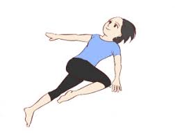 3.イラストのように、片足を曲げて倒し深呼吸をする。