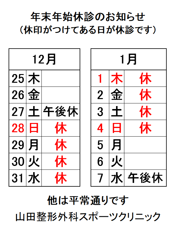 年末年始休診は下記の通りです。